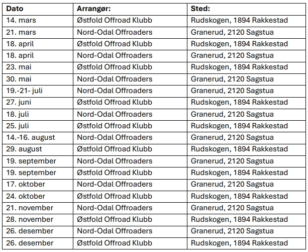 Her er planlagte 4x4 4-fun arrangement fremover, flere vil komme til: